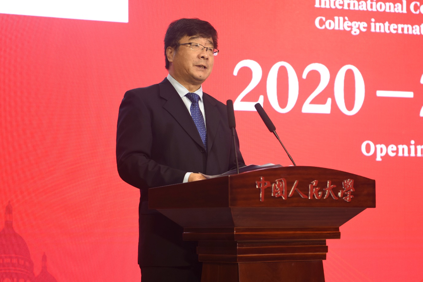 Representing the school, Mr Liu Wei, President of Renmin University of China (RUC) and Director of Management Committee of Suzhou Campus; warmly welcomed the freshman, expressed his respect towards the parents for the hardships they bore teaching their children, and his gratitude to staff who worked hard during the pandemic period to ensure the smooth start of a new semester. He pointed out that the Suzhou campus is an important part of RUC’s development, and from now on, students are walking abreast with RUC. He mentioned 2 expectations he has for the students, firstly to grasp the course of youth and be a leader of the times with ideals and constantly working hard and forging forward, and secondly to persevere and welcome diversity and be a responsible creator of times who fights for one’s goals.