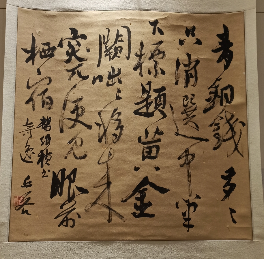 The work above was done by Yang Ruizhenwho was from Shaoxing City andwasknown to be the monster of art as his writings were wild. Mr Qiu had enlargedhis works and it was a section of a short story. As compared with a famous calligrapher Zhao Mengfuwho was an official, the contrast was obvious. Zhao Mengfu’s writing was more formal, neat and regularwhile Yang Ruizhen’s writings were irregular and wild.