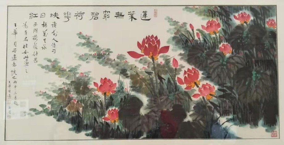 Besides paintings, there are also calligraphy works exhibited. The different writing styles used are mainly standard script style (楷书)and running script style (行书).